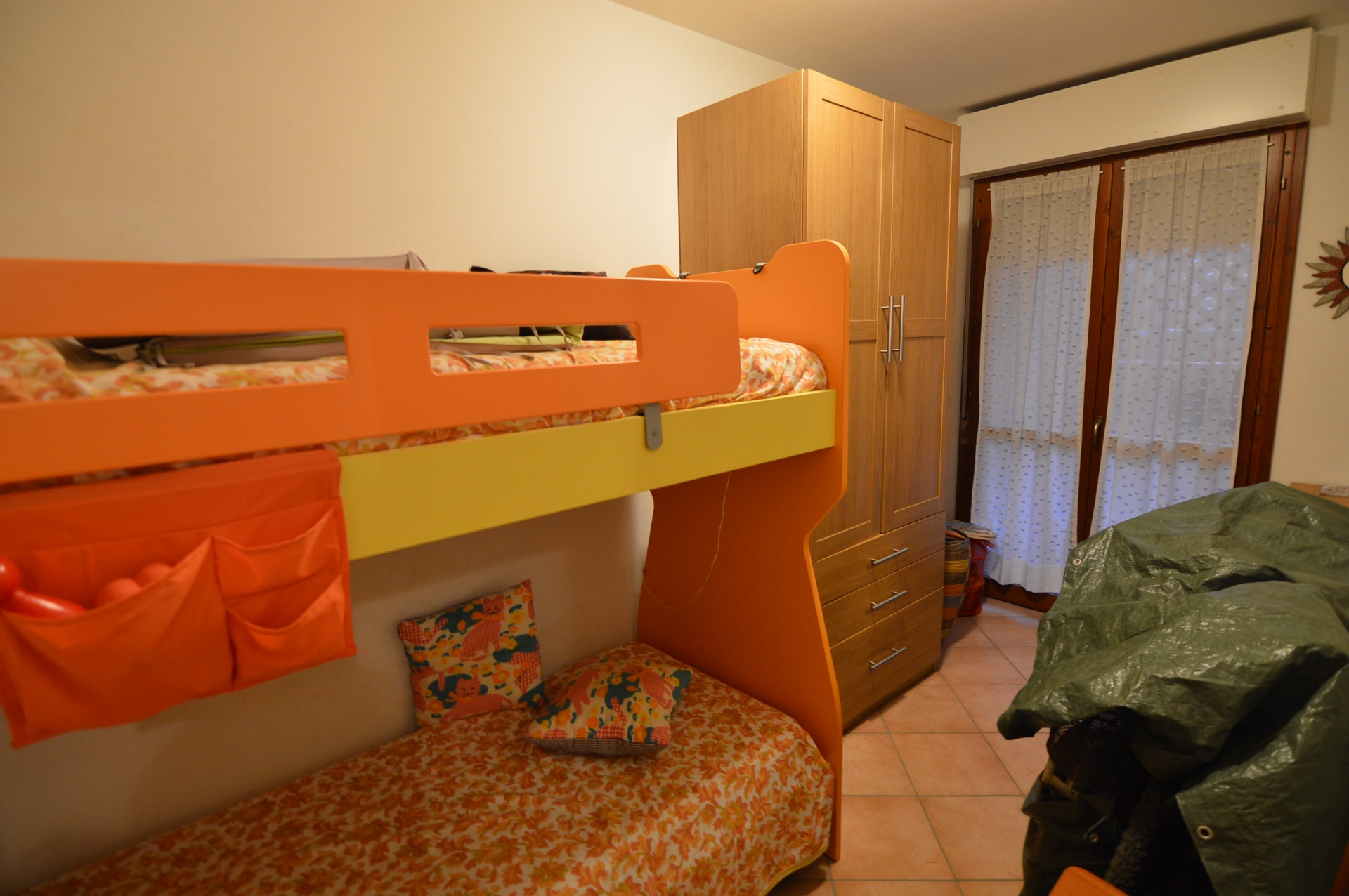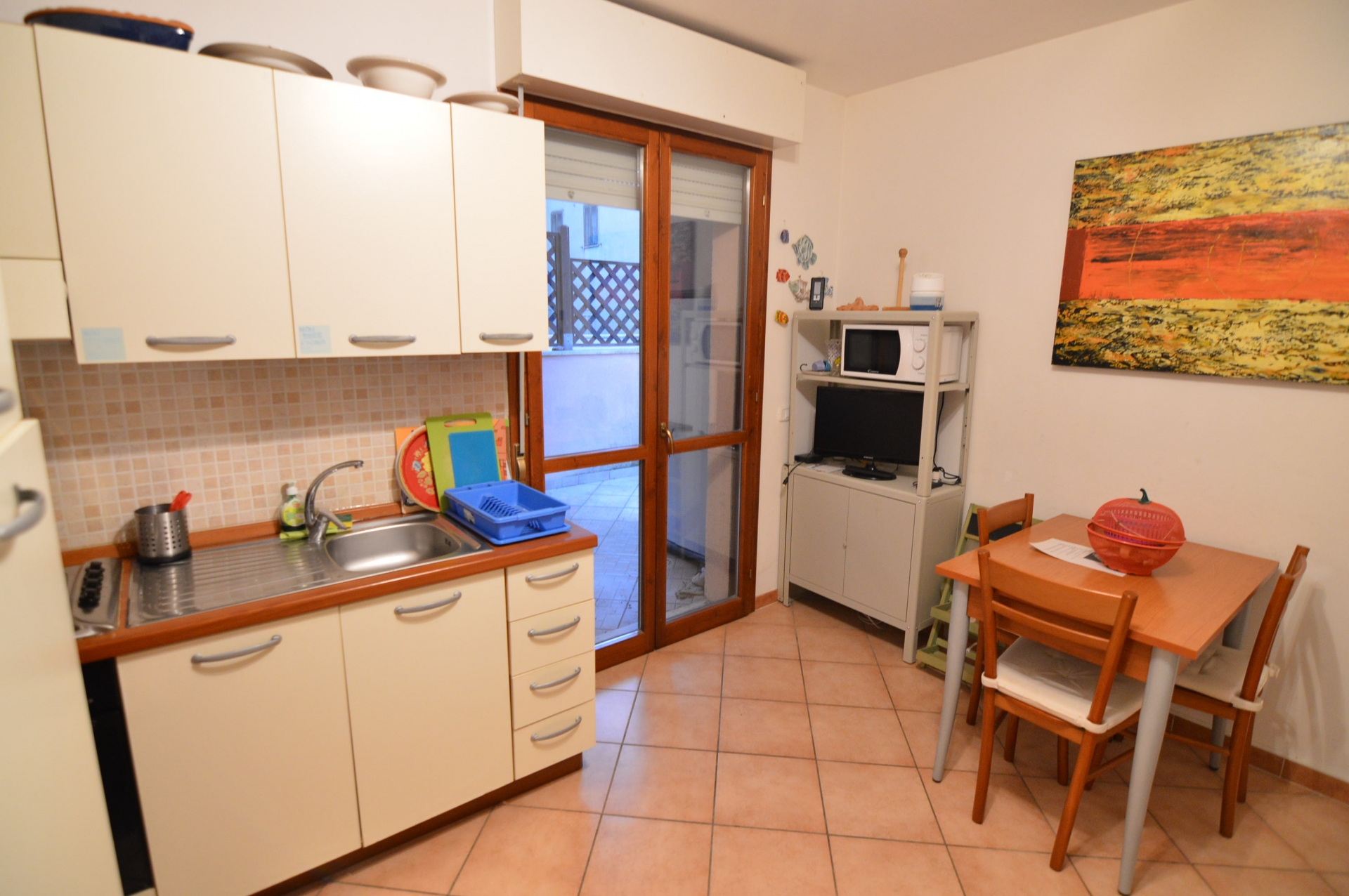 APPARTAMENTO AL PIANO RIALZATO COSI COMPOSTO : SOGGIORNO CON ANGOLO COTTURA, CAMERA MATRIMONIALE, CAMERA CON LETTO A CASTELLO, BAGNO, GRANDE TERRAZZA PER MANGIAR FUORI. DIVANO LETTO, TV, LAVARTICE , ARIA CONDIZIONATA