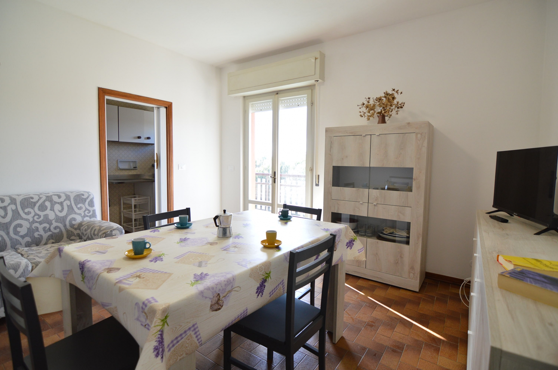 Grande appartamento in ottima posizione zona Villa Gaia, al piano primo a pochi passi dalla spiaggia, composto da: sala, cucinotto, 2 ampie camere matrimoniali dove cè possibilità anche del terzo letto,bagno con box doccia e finestra terrazza vista mare e terrazza sul retro. Dotato di: Tv, lavatrice.