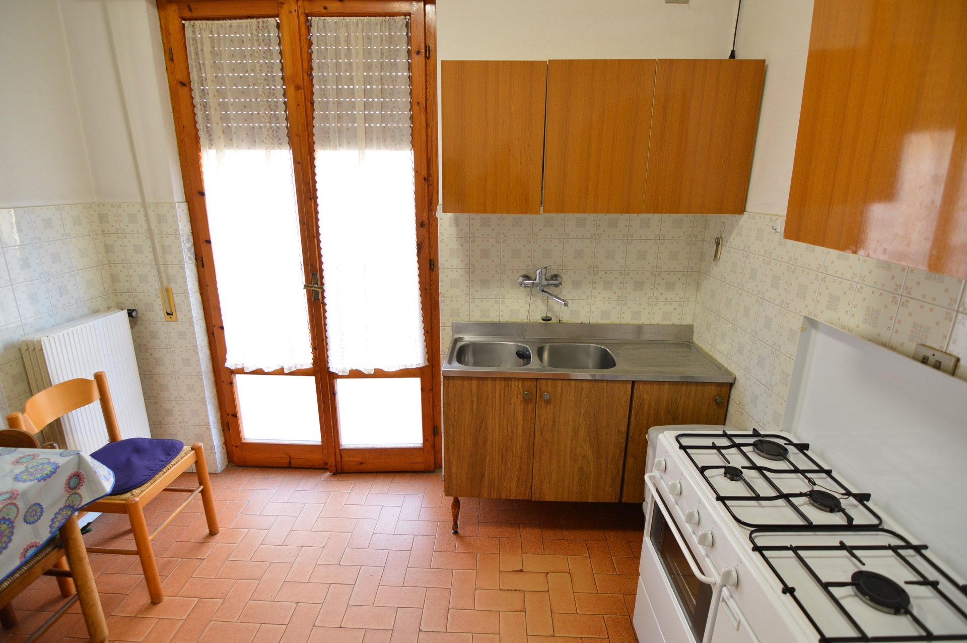 Appartamento in centro posto al piano primo senza ascensore, così composto: \nDue camere matrimoniali , cucina abitabile , bagno con box doccia , due terrazze,tv, lavatrice.