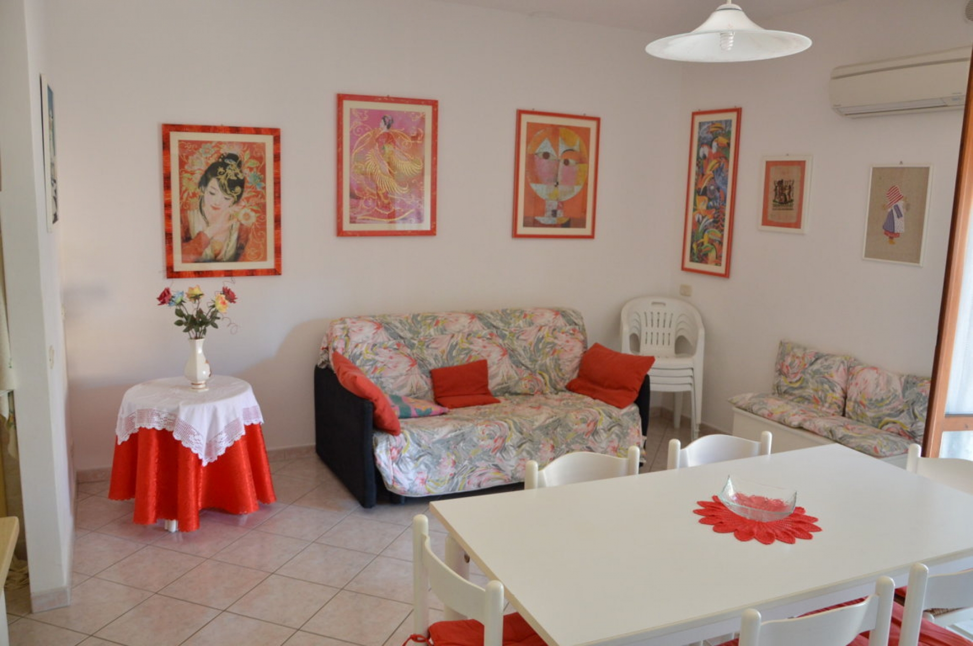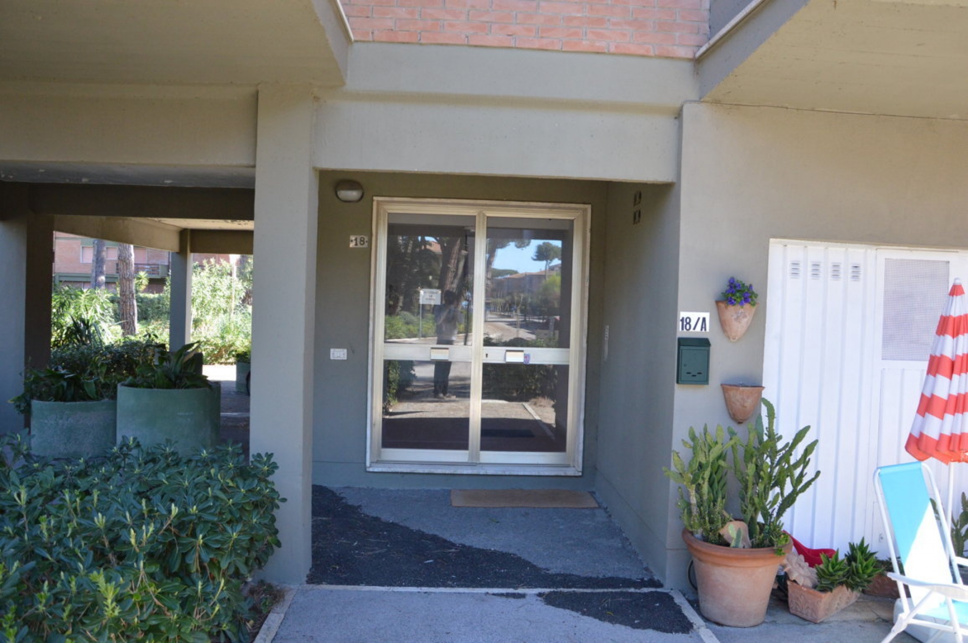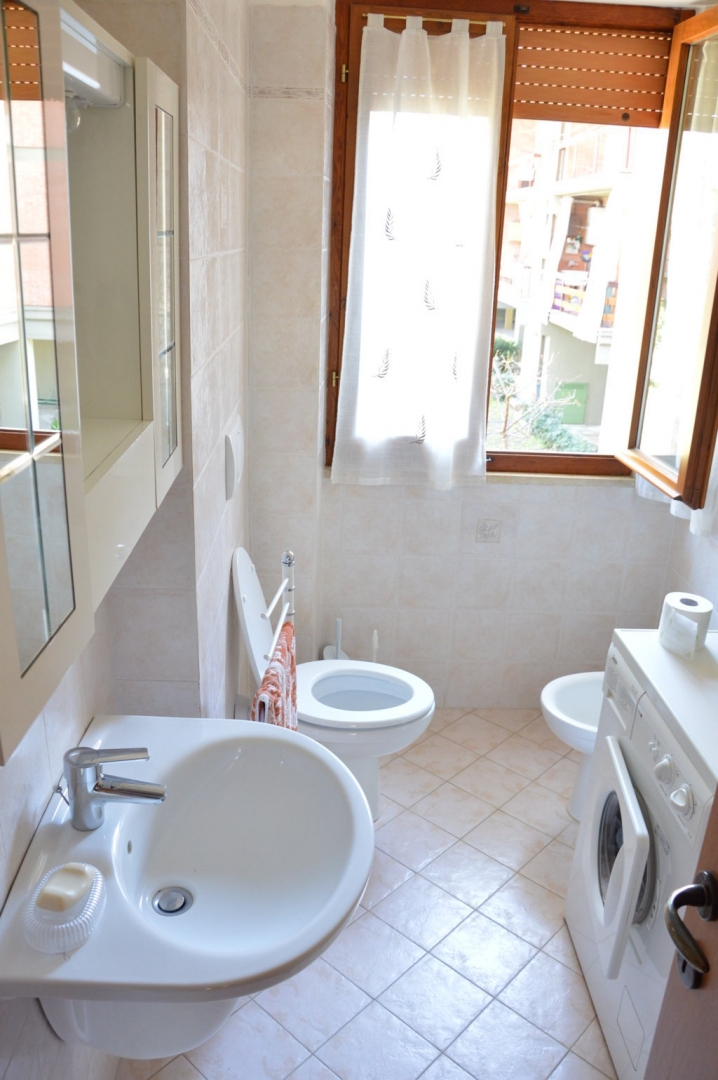 Bilocale posto al 1° piano recentemente ristrutturato, 400 mt. dal mare in pineta ,250 mt. dal centro, composto da: Sala con angolo cottura, camera matrimoniale con terzo letto, bagno con box doccia, terrazzino coperto.\nDotato di: Climatizzato, lavatrice, Tv.