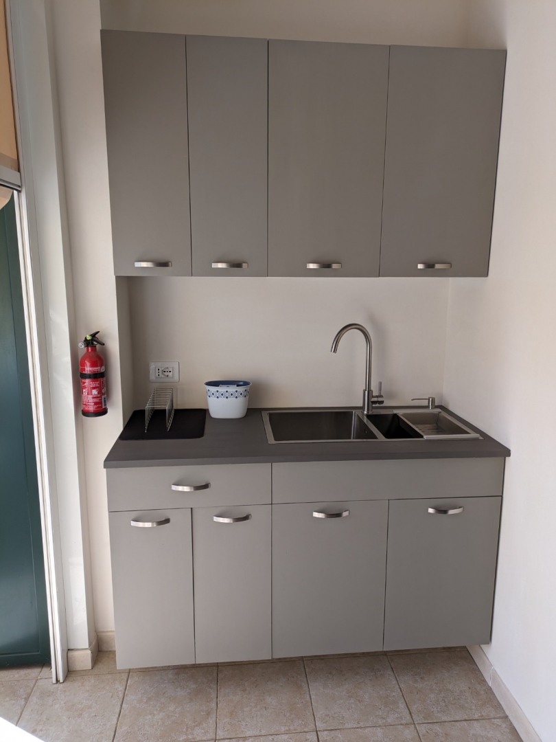 Appartamento al piano secondo con ascensore in palazzina di nuova costruzione, composto da: soggiorno con angolo cottura, bagno con box doccia, camera matrimoniale, Tv, lavatrice, climatizzazione, terrazza coperta, posto auto privato.