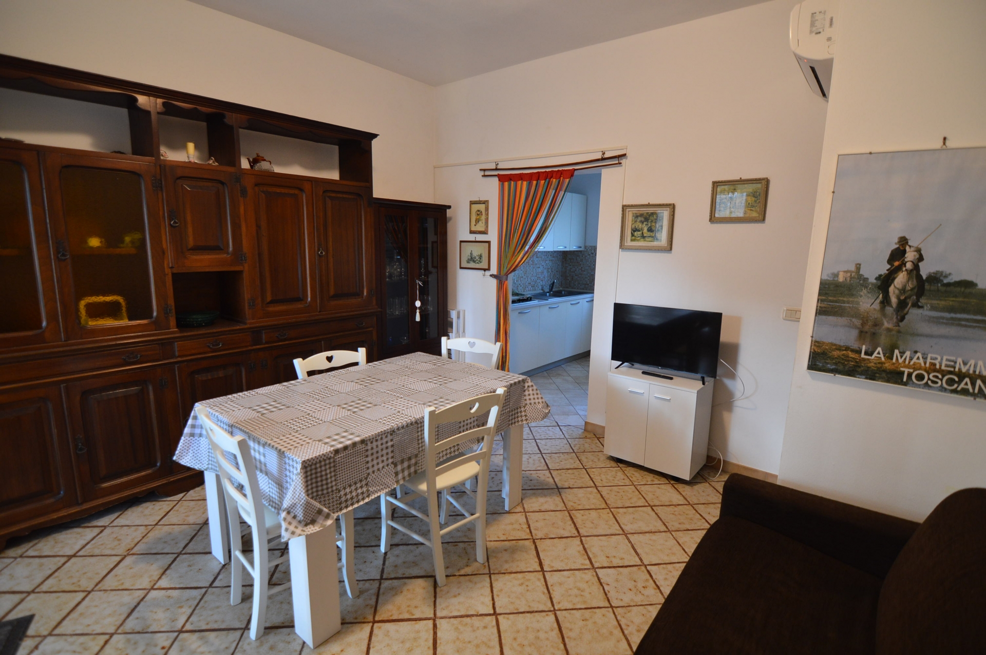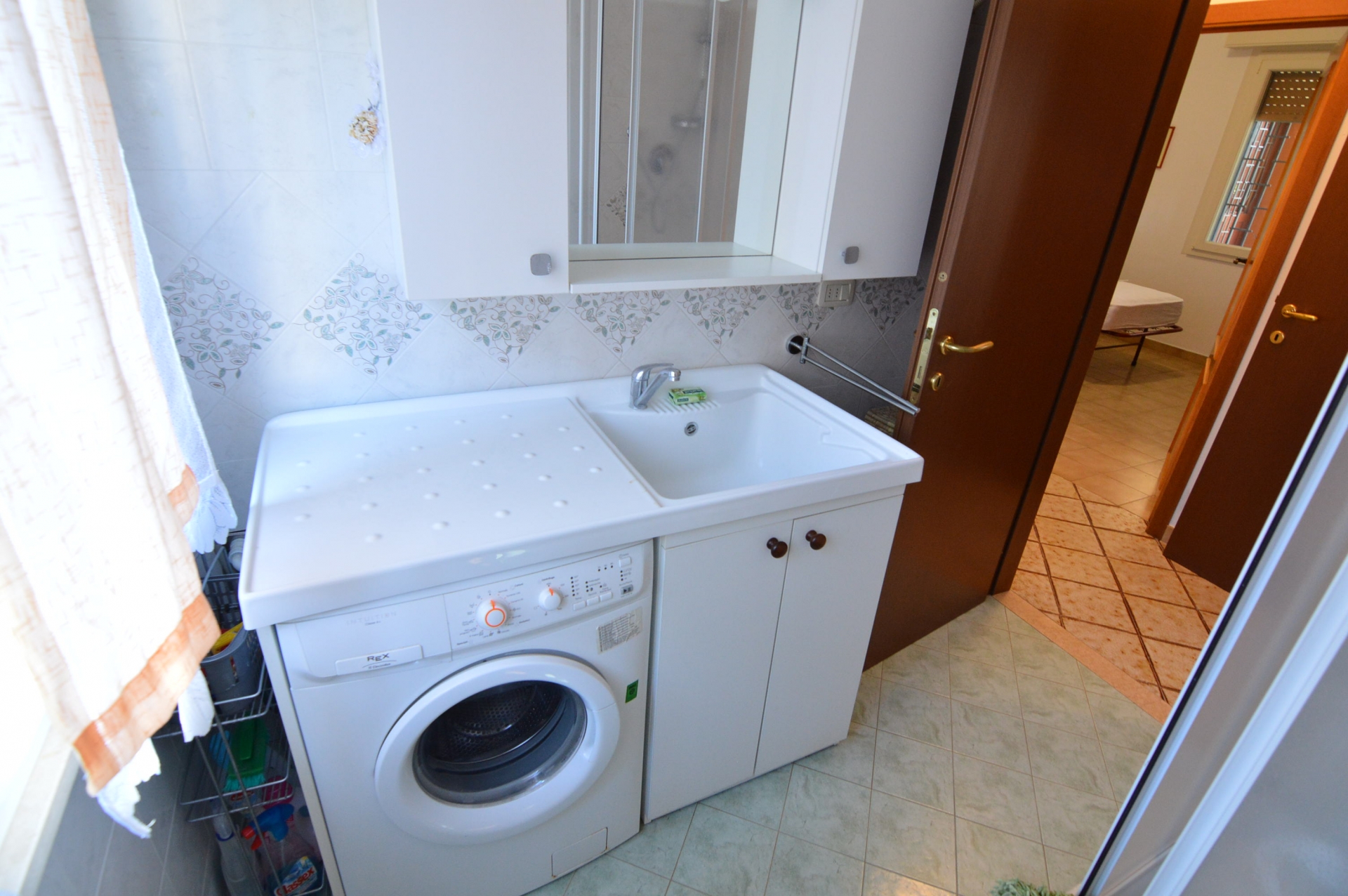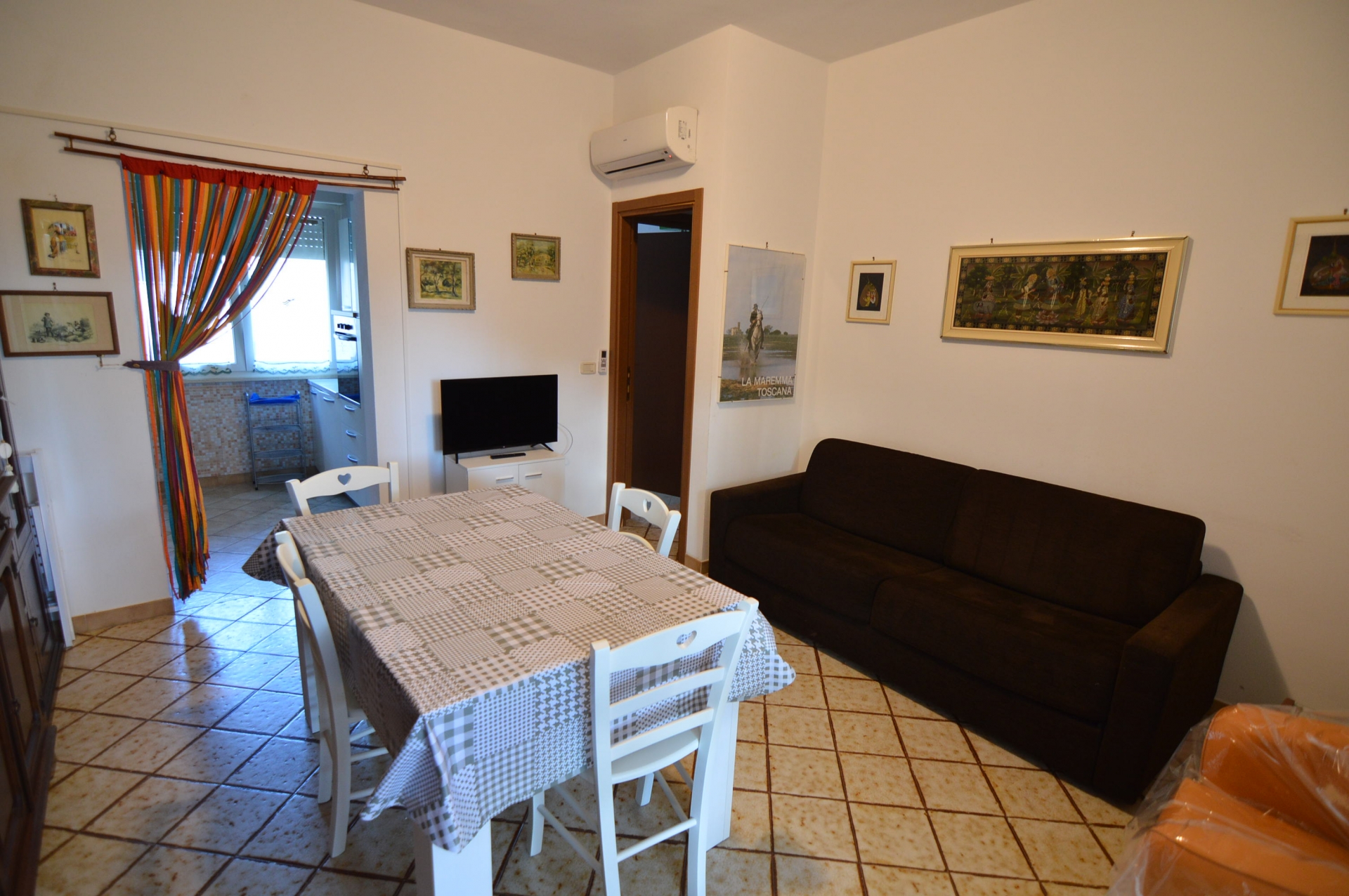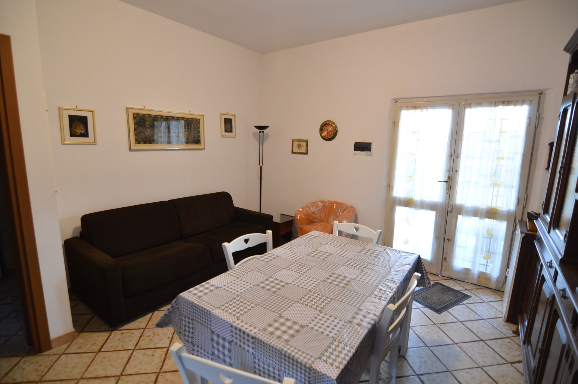 Appartamento con ingresso condominiale, al piano primo composto da: sala, cucina abitabile, camera matrimoniale, camera doppia, bagno con box doccia e finestra, tv, lavatrice, lavastoviglie, climatizzato.