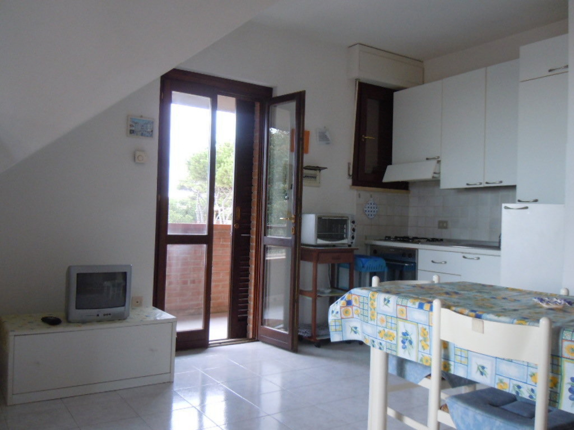 Appartamento a 50 Mt dal mare posto al piano secondo, su due livelli e composto da: soggiorno con angolo cottura, camera matrimoniale, bagno con box doccia, terrazza grande vista mare per mangiar fuori, terrazzino di servizio; al piano superiore camera con due lettini e grande terrazza vista mare.Dotato di: Tv, lavatrice e divano letto matrimoniale nel soggiorno.