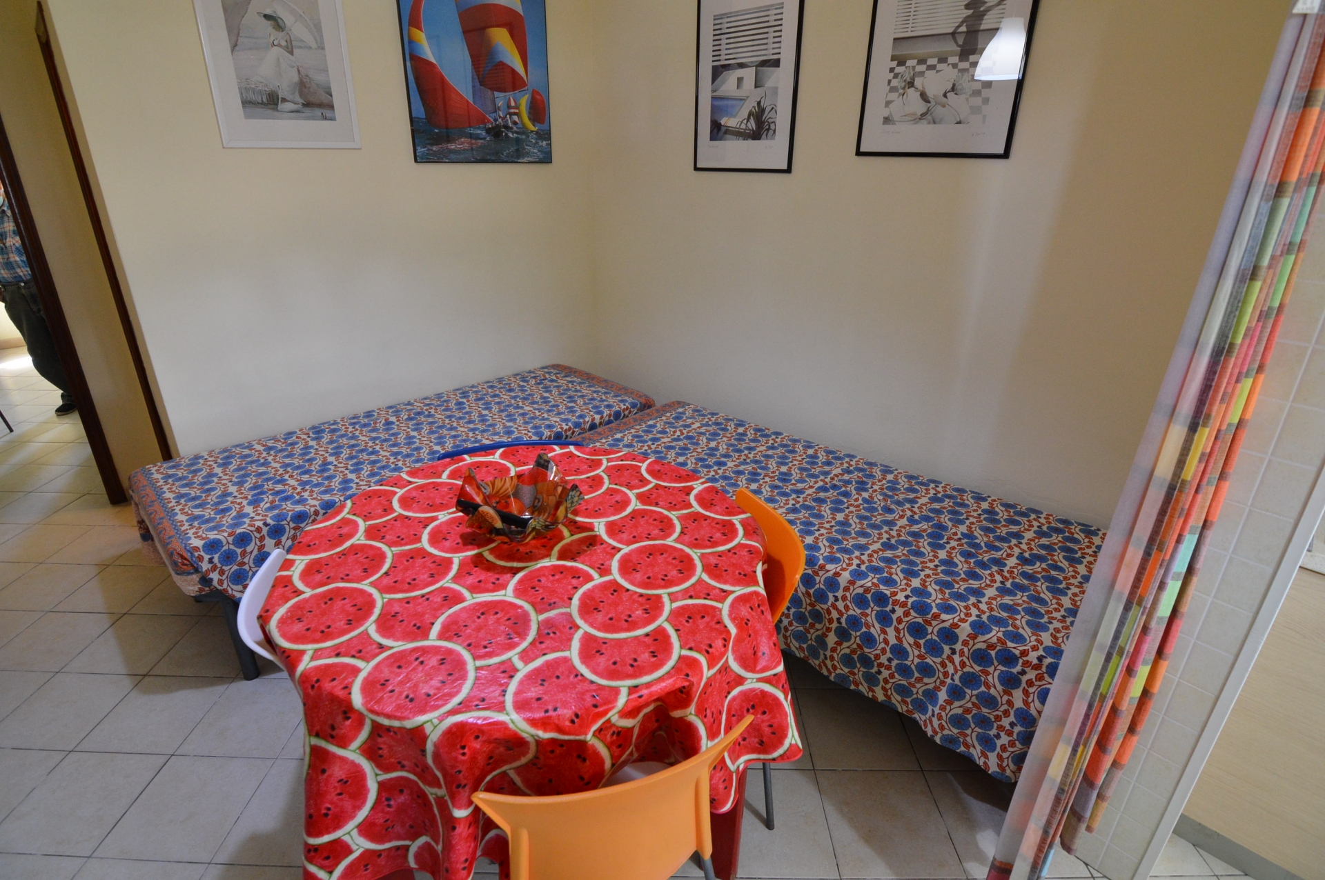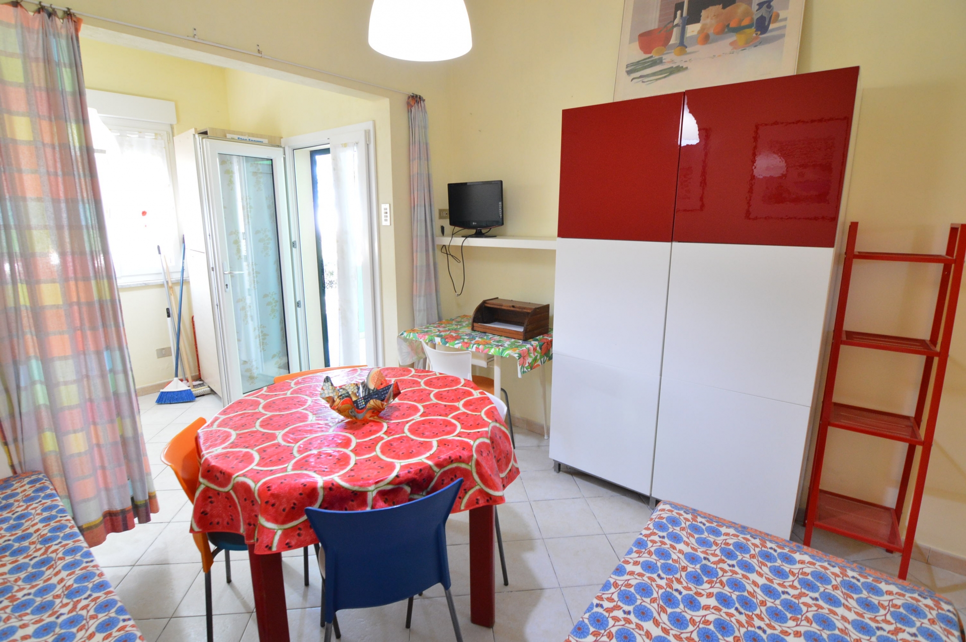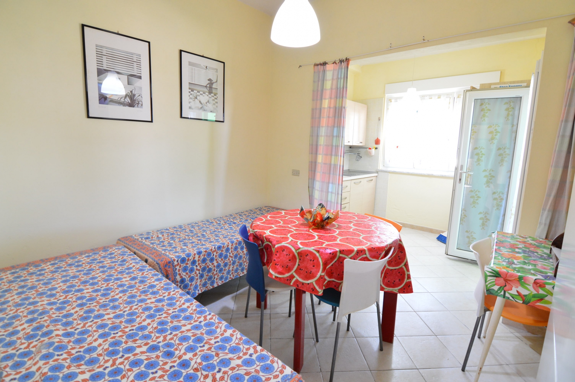 Appartamento bilocale con ingresso indipendente a pochi passi dalla spiaggia, di fronte al bagno Dolce Vita, composto da: soggiorno con angolo cottura, camera matrimoniale, bagno con box doccia, veranda coperta per mangiare fuori.