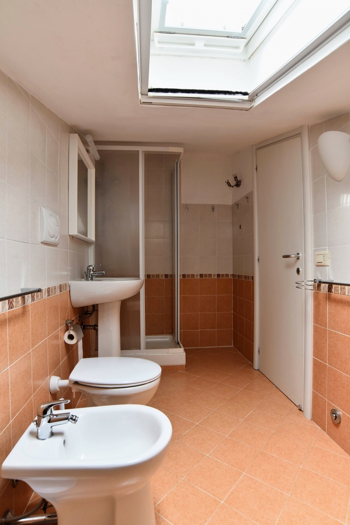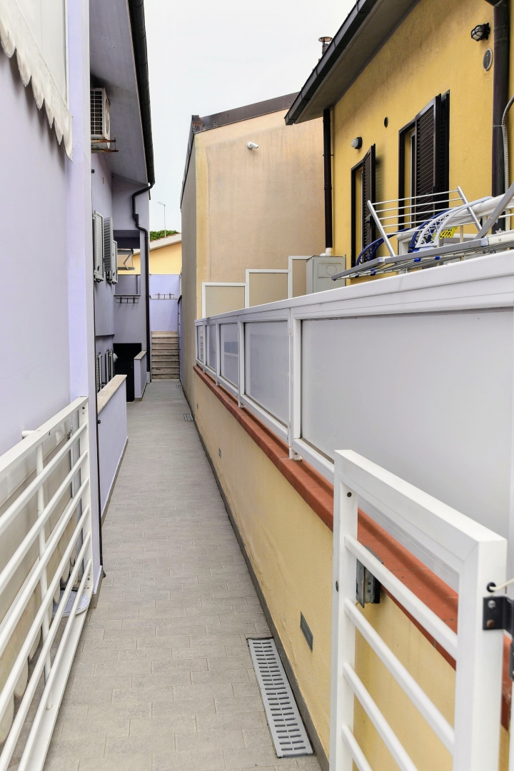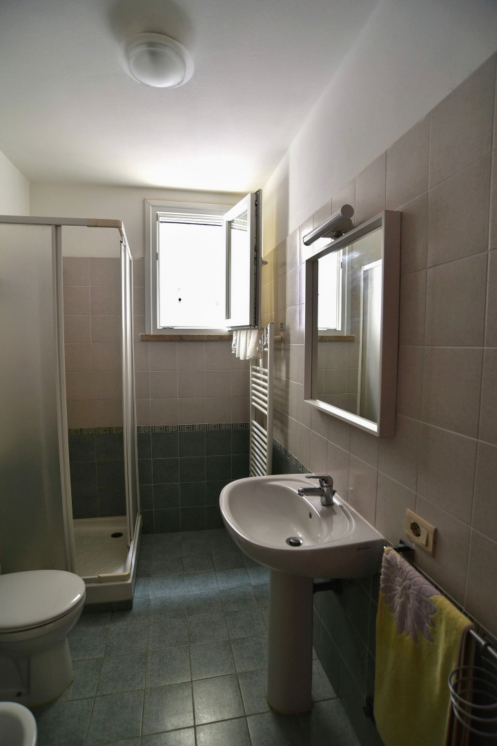 Appartamento del 2010, a 100m dal mare in zona tranquilla e servita.\nSi sviluppa su 3 piani di cui l'ultimo mansardato, suddivisi in 2 appartamenti separati ma comunicanti.\nComposto da 3 bagni, 2 cucine, 2 camere matrimoniali e ampia mansarda divisa in 2 zone notte con 4 posti letto e con bagno, veranda esterna con tenda motorizzata con anemometro e veranda coperta, ripostiglio e pilozzo esterno, zona con scarico a pavimento e porta per possibilità di doccia esterna.\nIl tutto completamente arredato, climatizzato in tutti i piani, fornito di gas di città con impianto di riscaldamento a temosifoni.\nDispone fino a 14 posti letto comodi, ingresso indipendente con cancellino. Posteggio fronte strada sempre disponibile.
