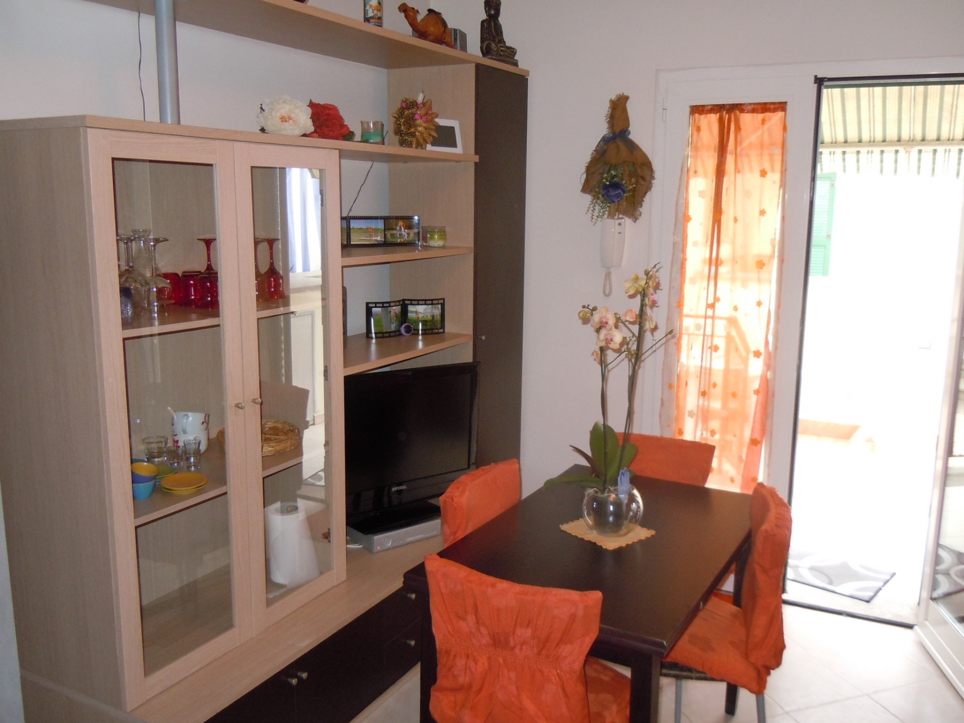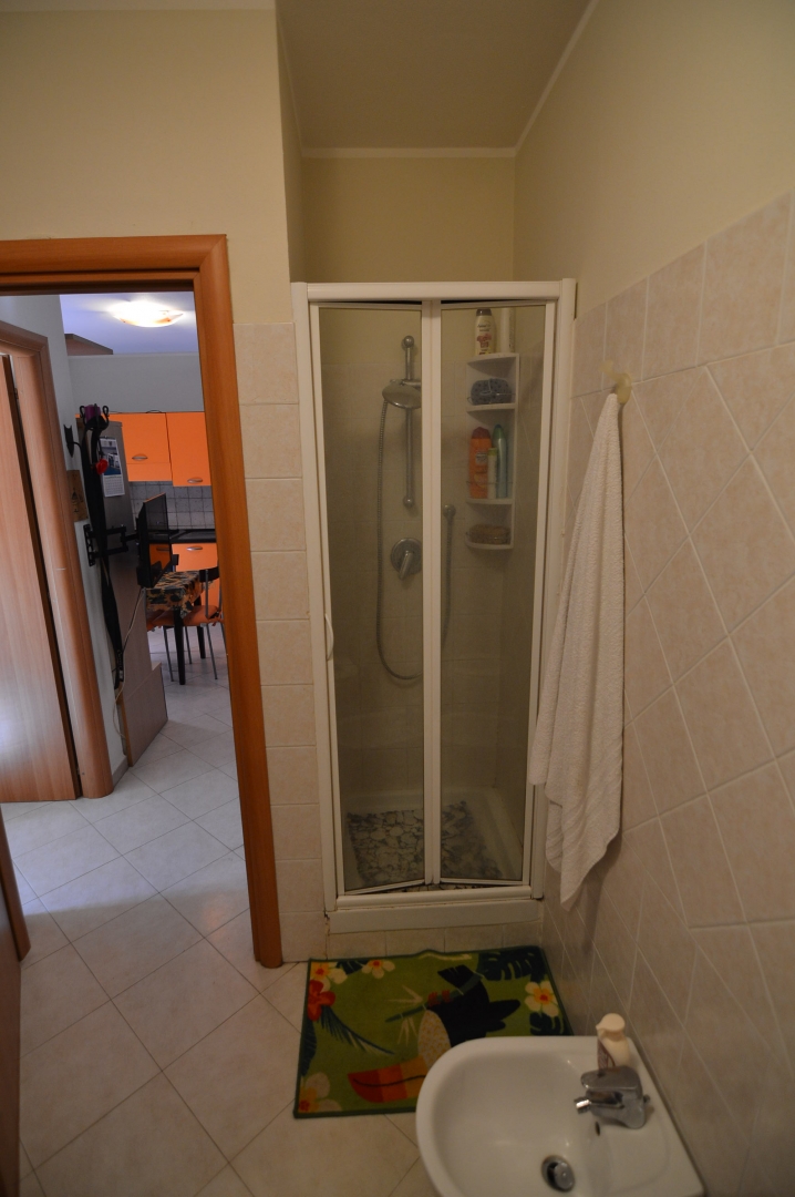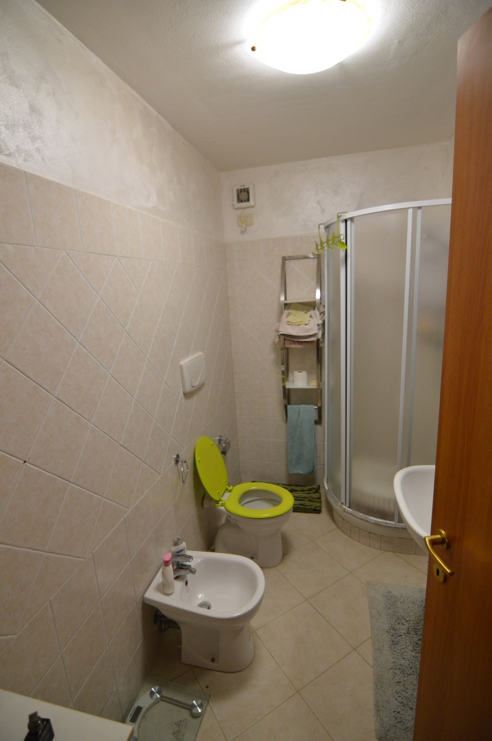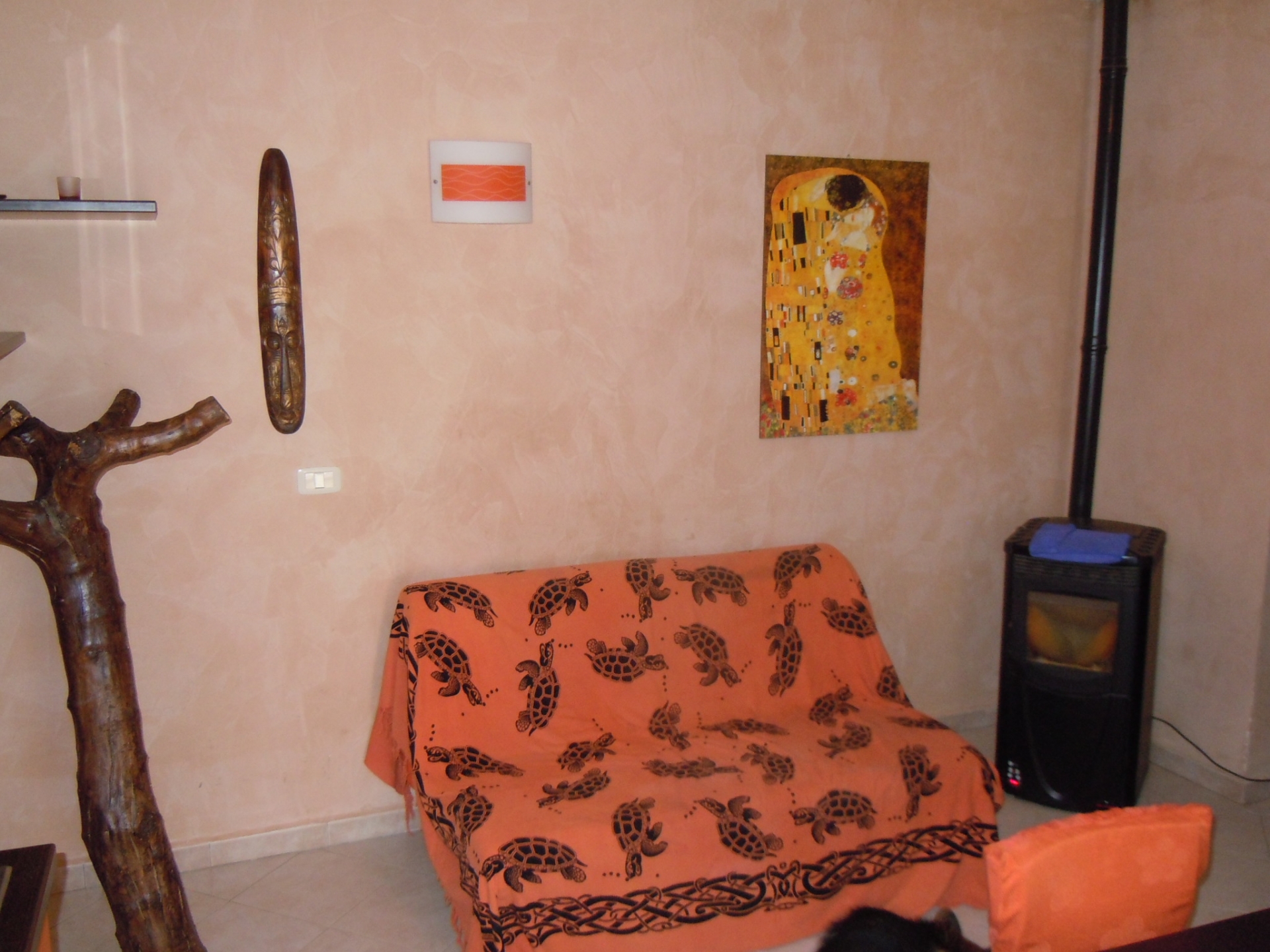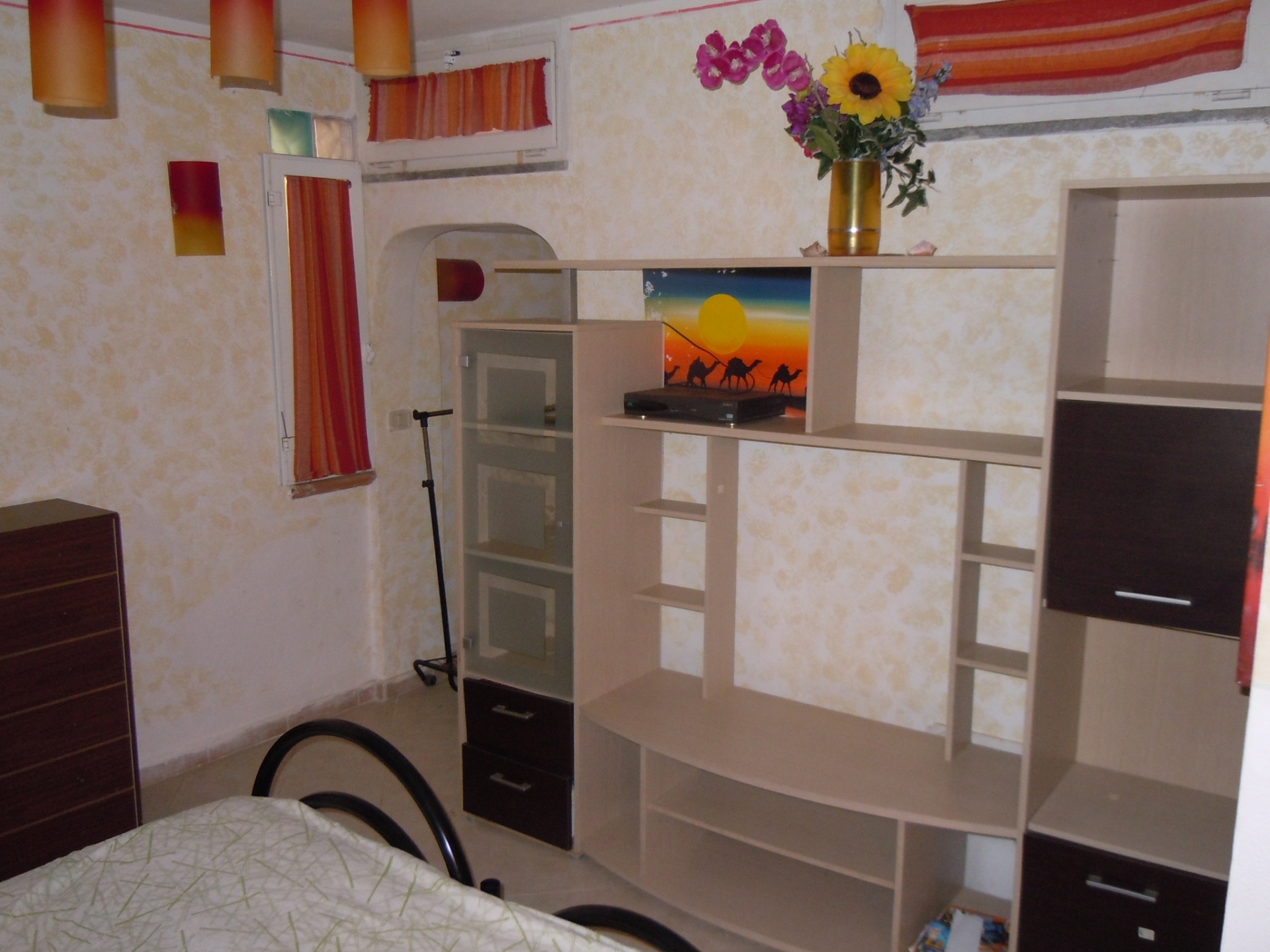 Vendesi Bilocale con piccolo resede privato e annessi due vani cantina ed un bagno al piano primo sottostrada.\nL'immobile è posto su due livelli, Al piano rialzato: Soggiorno con angol cottura, camera matrimoniale, bagno con box doccia, terrazza, resede esclusivo; AL piano primo sottostrada due vani ad uso cantina, tinello ed un bagno con box doccia. \nL'appartamento è di recente costruzione, completamente arredato con ottime rifiniture, dotato di climatizzatore e stufa a pellet.\nSi precisa che il terreno dove insiste la costruzione è in diritto di superficie per 60 anni con il Demanio.