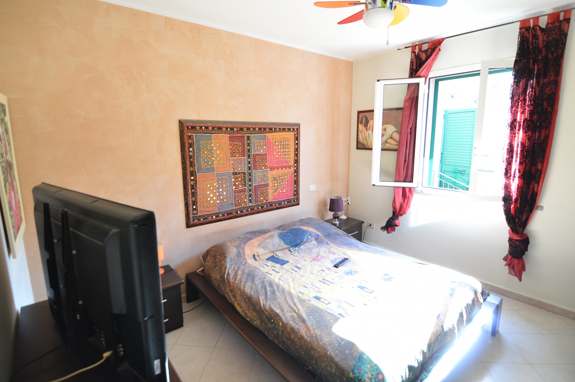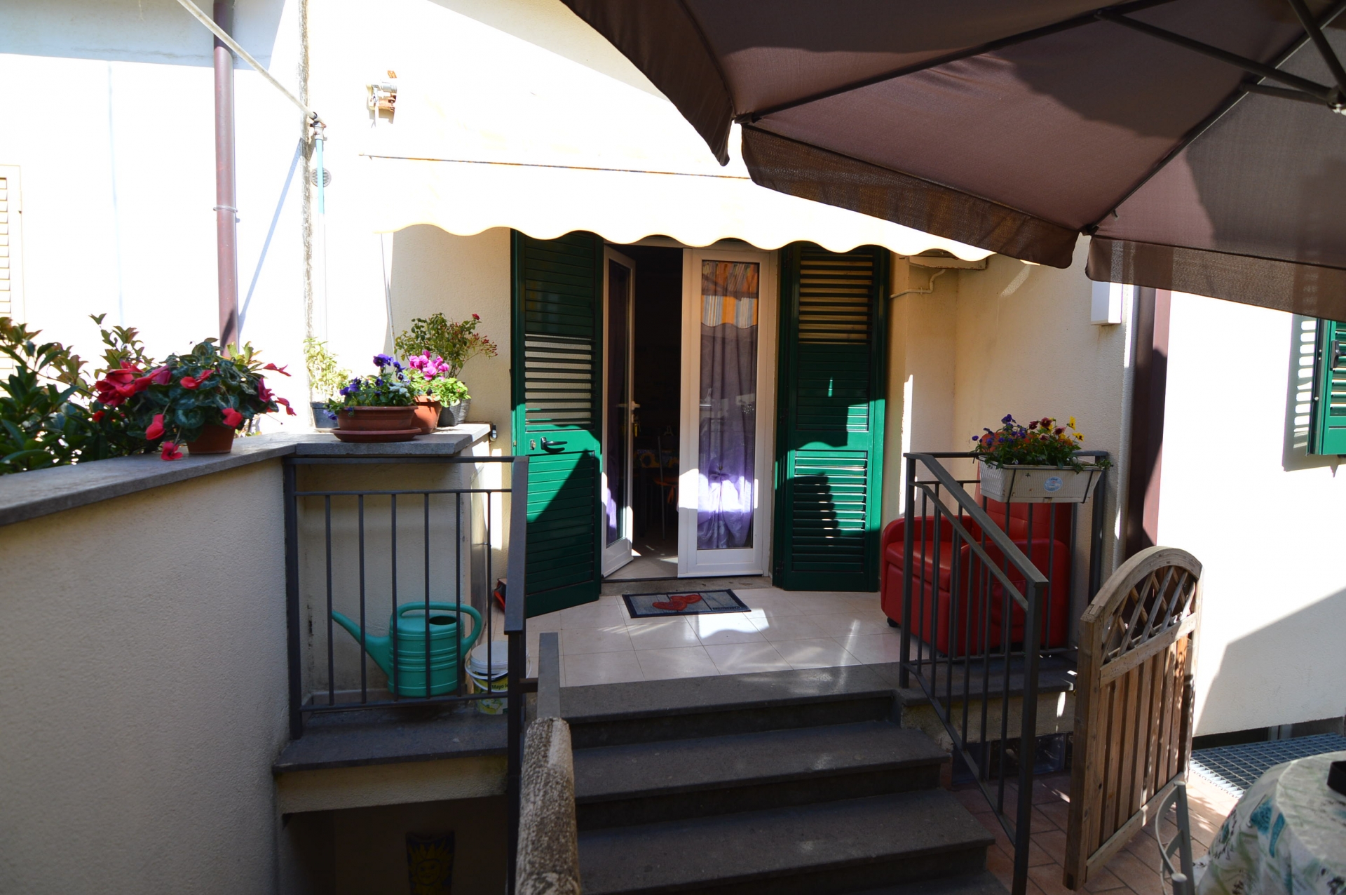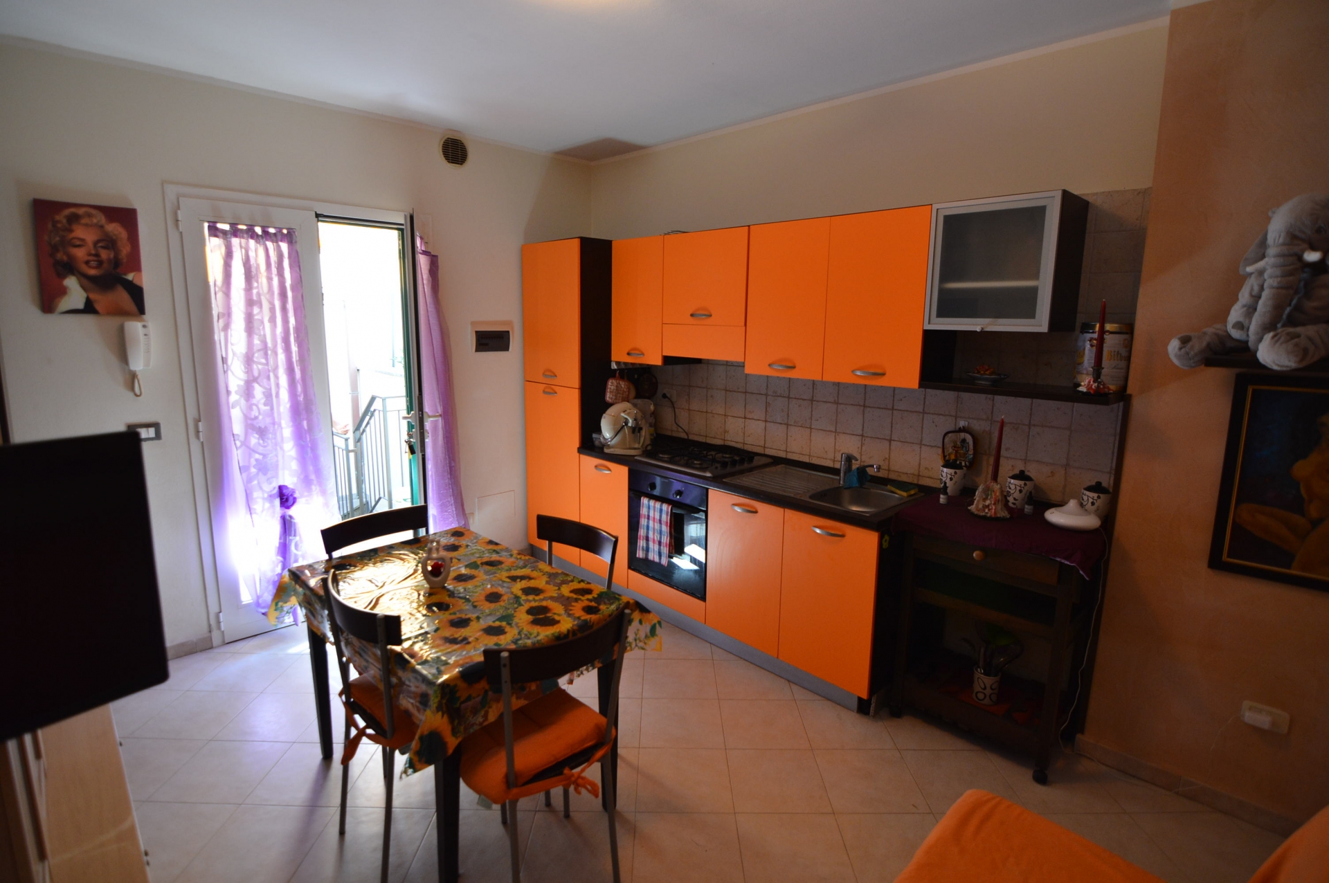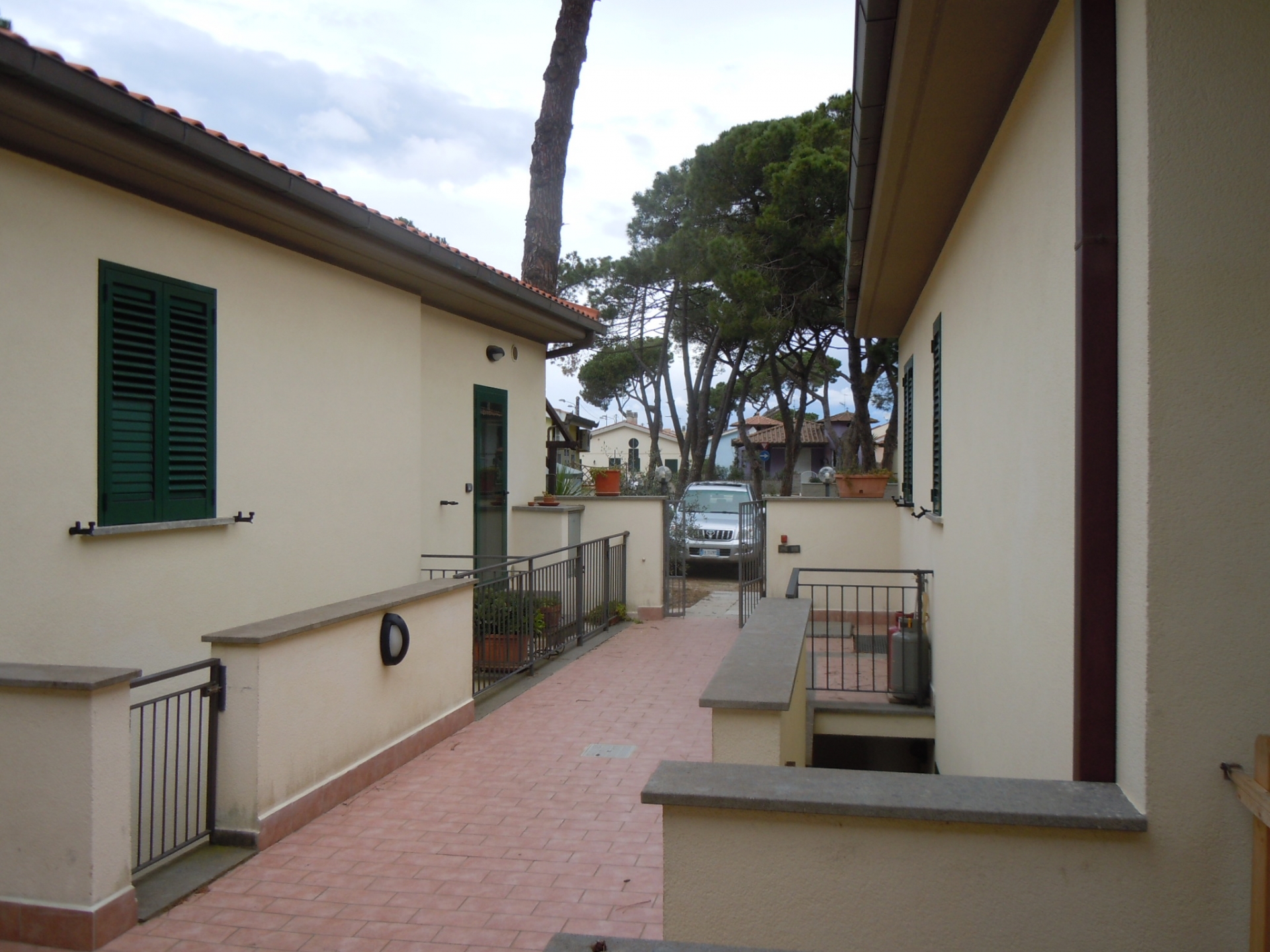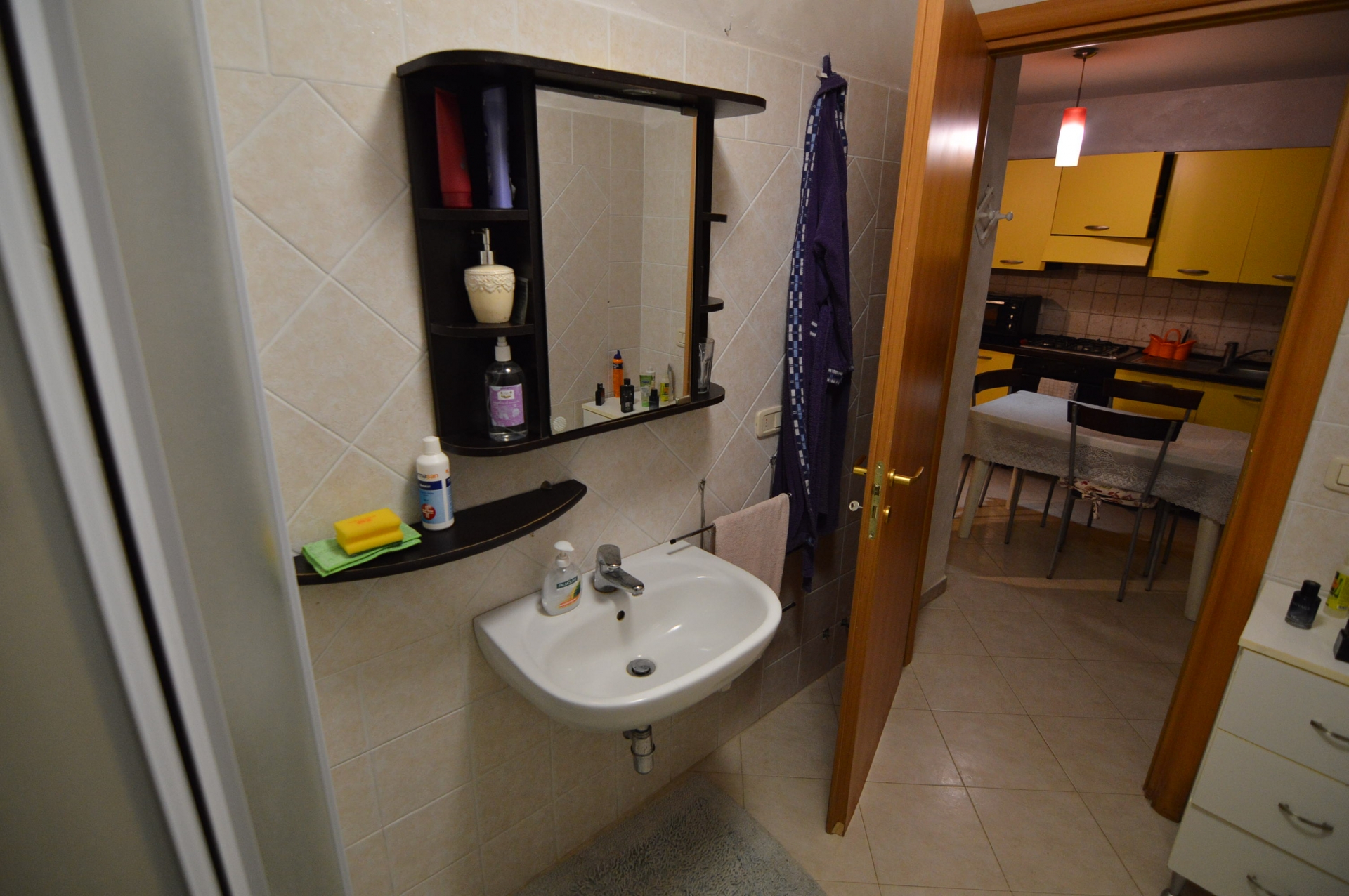 Vendesi Bilocale con piccolo resede privato e annessi due vani cantina ed un bagno al piano primo sottostrada.\nL'immobile è posto su due livelli, Al piano rialzato: Soggiorno con angol cottura, camera matrimoniale, bagno con box doccia, terrazza, resede esclusivo; AL piano primo sottostrada due vani ad uso cantina, tinello ed un bagno con box doccia. \nL'appartamento è di recente costruzione, completamente arredato con ottime rifiniture, dotato di climatizzatore e stufa a pellet.\nSi precisa che il terreno dove insiste la costruzione è in diritto di superficie per 60 anni con il Demanio.