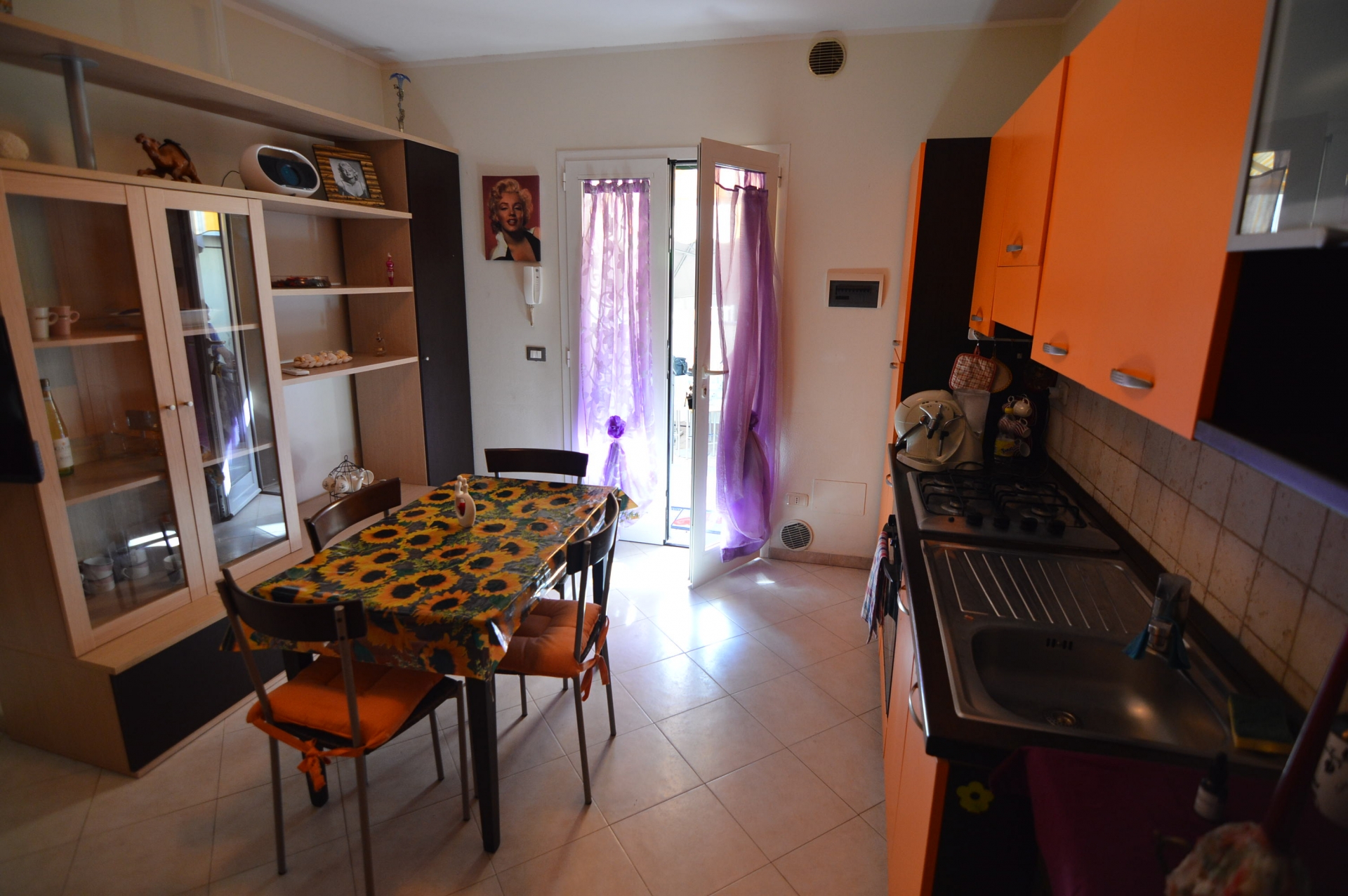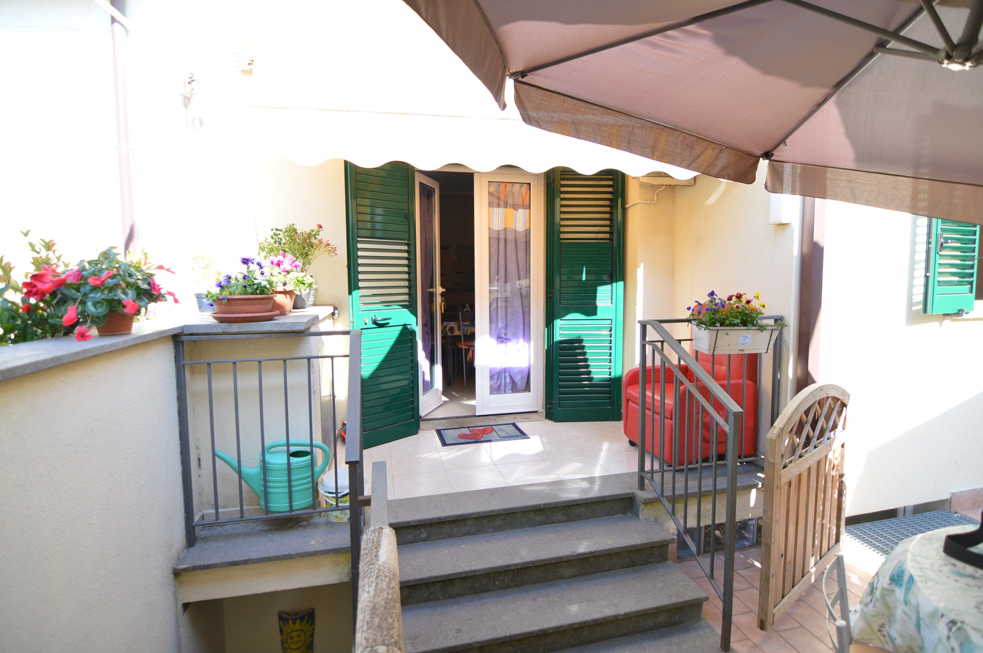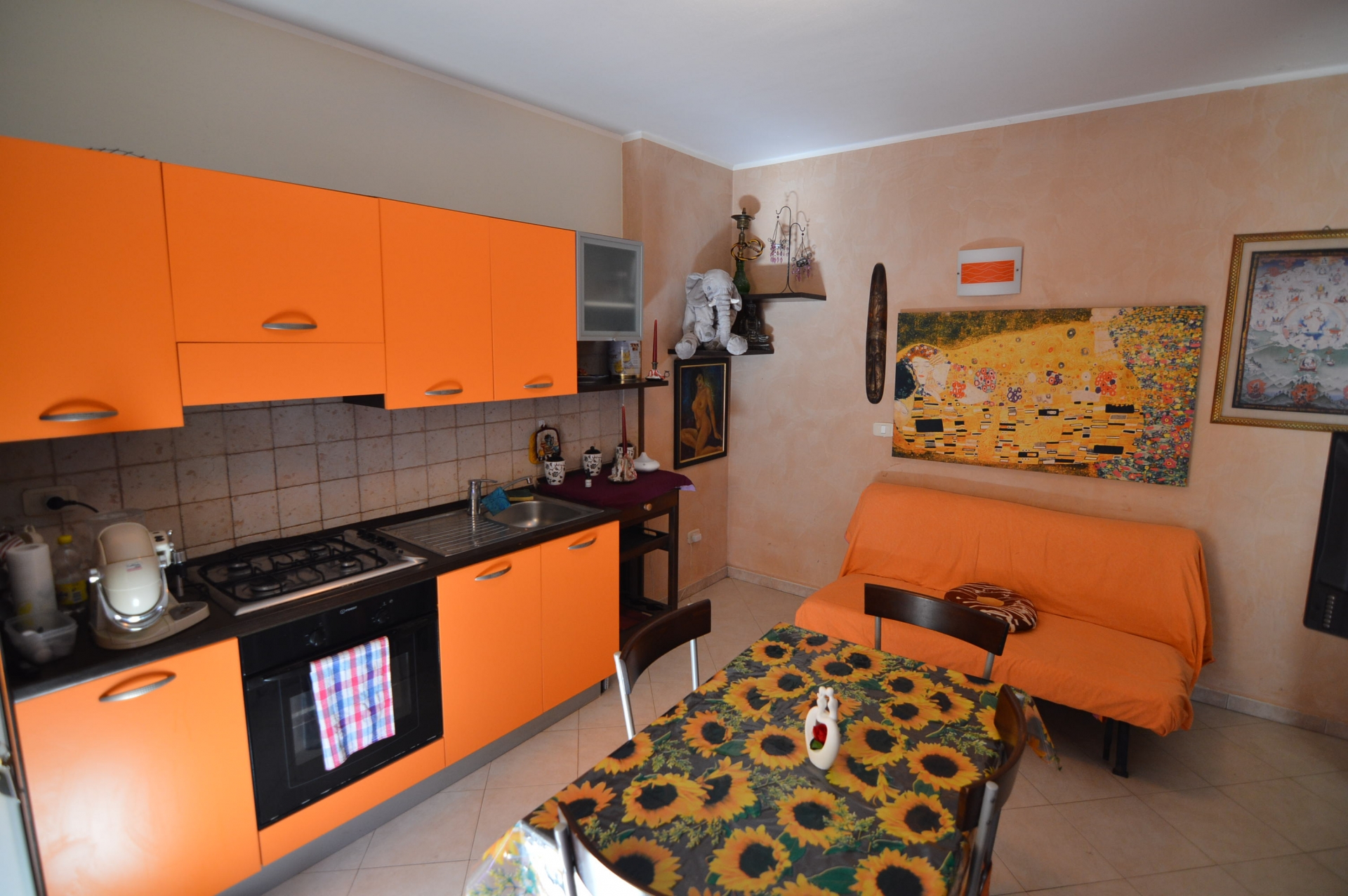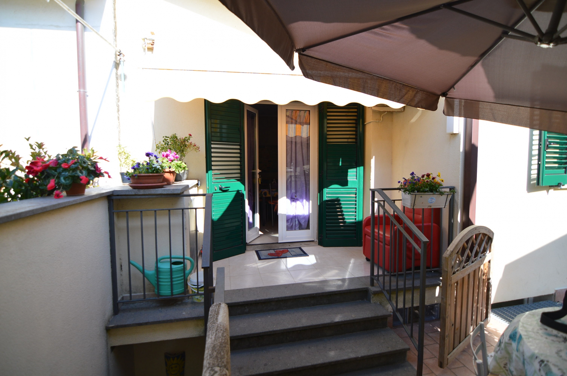 Vendesi Bilocale con piccolo resede privato e annessi due vani cantina ed un bagno al piano primo sottostrada.\nL'immobile è posto su due livelli, Al piano rialzato: Soggiorno con angol cottura, camera matrimoniale, bagno con box doccia, terrazza, resede esclusivo; AL piano primo sottostrada due vani ad uso cantina, tinello ed un bagno con box doccia. \nL'appartamento è di recente costruzione, completamente arredato con ottime rifiniture, dotato di climatizzatore e stufa a pellet.\nSi precisa che il terreno dove insiste la costruzione è in diritto di superficie per 60 anni con il Demanio.